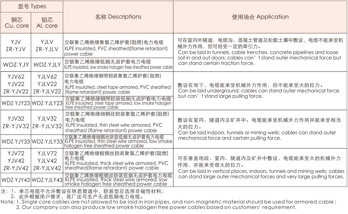 額定電壓35kV及以下銅芯、鋁芯交聯(lián)聚乙烯絕緣電力電纜GB/T12706.2-2008,GB/T1 2706.3-2008,IEC60502-2005,GB/T19666-2005